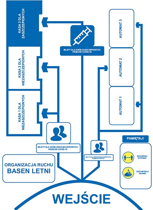 - Osoby w pełni zaszczepione oraz osoby w pełni zaszczepione wraz z dziećmi do 12 roku życia zapraszamy do kasy oznaczonej dla osób zaszczepionych przeciw COVID-19 (w przypadku osiągnięcia limitu 75% wejście z dedykowanej kasy będzie możliwe tylko i wyłącznie przez osoby w pełni zaczepione do momentu osiągnięcia limitu 100%).