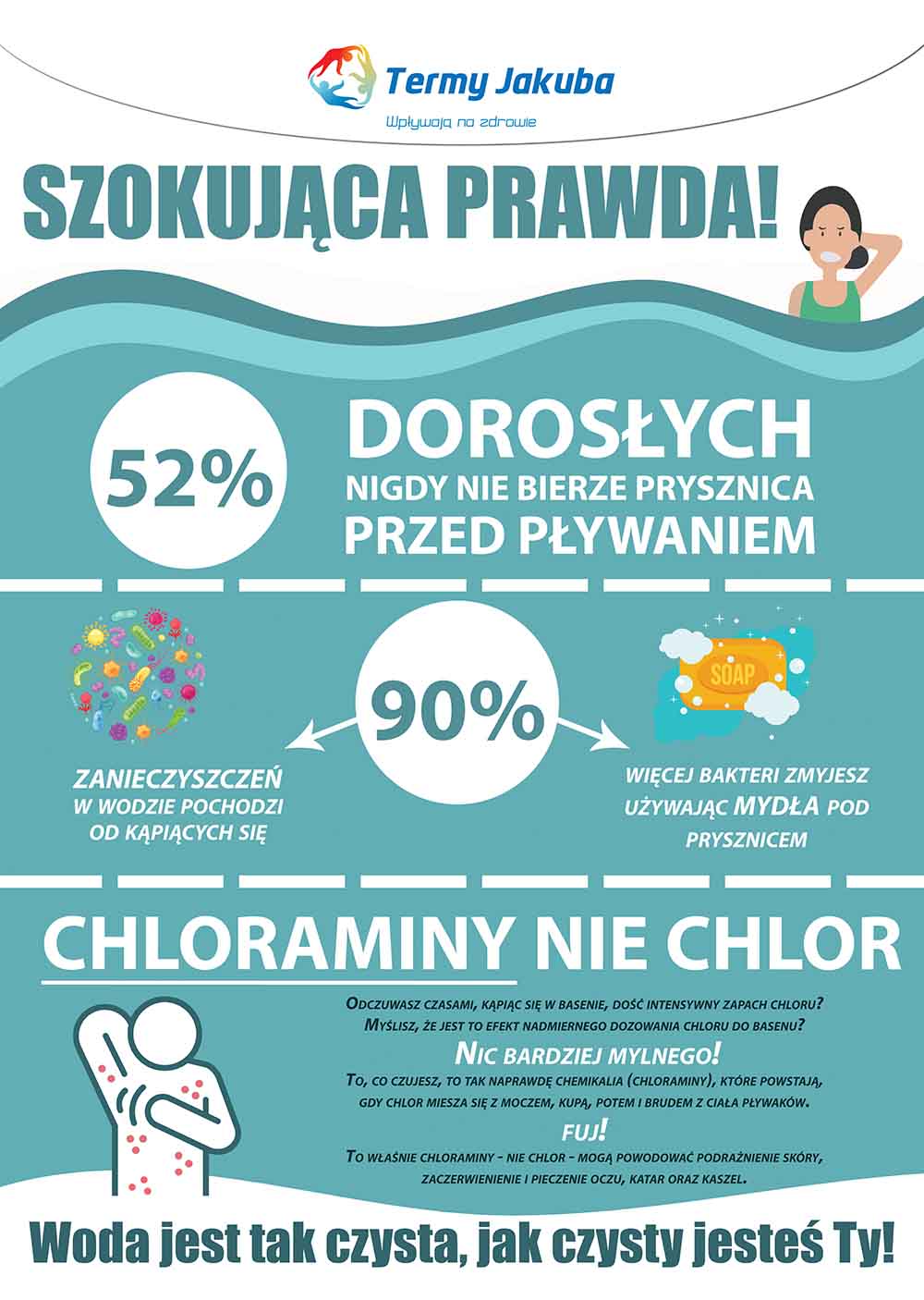 - Przed wejściem na basen musisz dokładnie umyć całe ciało mydłem pod prysznicem.